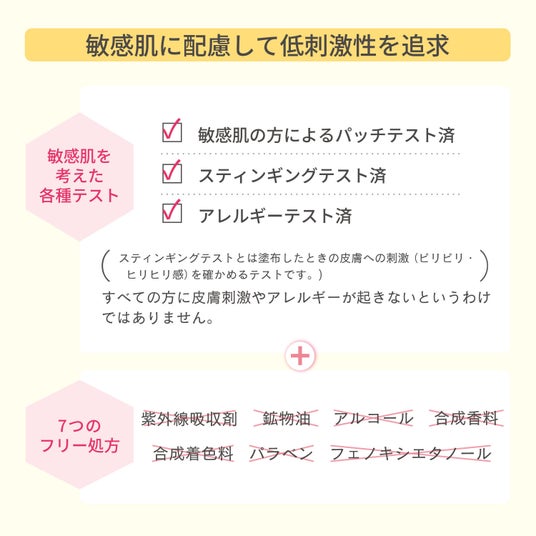 毎日使い続けられるよう、肌へのやさしさにもこだわりました。敏感肌の方によるパッチテスト、アレルギーテスト、スティンギングテスト済み