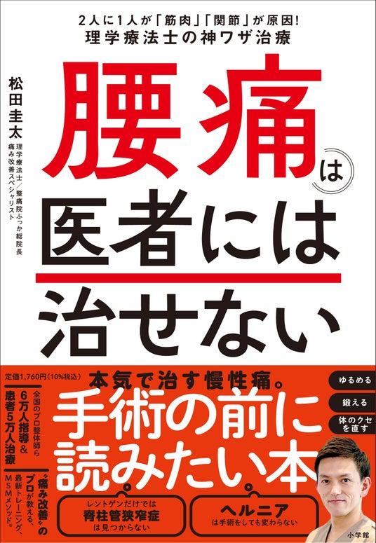 あなたの考える「腰痛の治療」はもう古い!? 理学療法士で「痛み改善」のスペシャリスト・松田圭太氏の初の著書『腰痛は医者には治せない:2人に1人が「筋肉」「関節」が原因!理学療法士の神ワザ治療』が、小学館より4月1日刊行されました。
