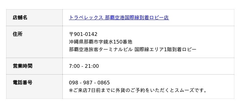 トラベレックス 那覇空港国際線到着ロビー店