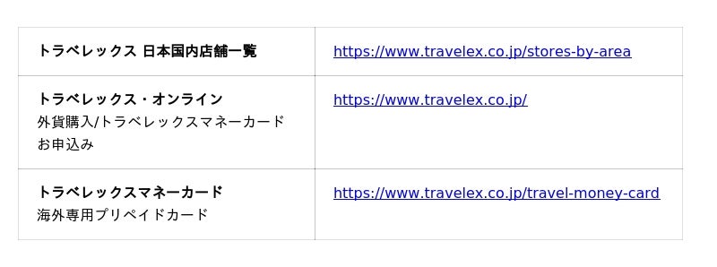 1976年に英国で創業したトラベレックスは、世界20以上の国と地域に600以上の店舗を展開する外貨両替のグローバル企業です。日本国内でも60以上の店舗を運営し、オンライン注文では外貨をご自宅へお届けいたします。外貨両替に加え、海外専用プリペイドカード「トラベレックスマネーカード」など、海外旅行や留学に便利なサービスを提供しています。