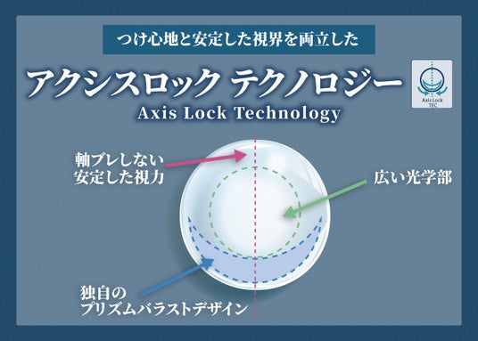 2026年4月1日(水)より、refrear SILICONEシリーズから乱視用コンタクトレンズを発売いたします。高い酸素透過率を持つシリコーンハイドロゲル素材で、下方に厚みを持たせるプリズムバラストデザインを採用。独自の『アクシスロック テクノロジー』により軸ブレを防ぎ、安定した視力と快適なつけ心地を実現いたします。