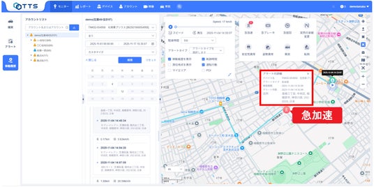 「TTSプラットフォーム画面」危険運転の検知