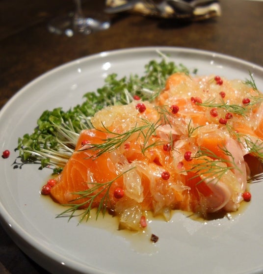 サクラマスのポワソン クリュ ラヴィゴットソース 上品な脂と引き締まった身、さっぱりとした酸味のソースが食欲をかきたてる