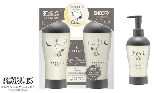 株式会社ヴィークレア(本社:東京都港区、代表取締役社長:岸野洋之)は、夜を味方につける、高機能ナイトケアブランド「セラティス」よりシリーズ初となるスヌーピーコラボデザインを『THERATIS Night Repair(セラティス ナイトリペア)/スヌーピー』、『THERATIS TERA Premium EX Night Control(セラティス テラ プレミアム EX ナイトコントロール)/スヌーピー』の2種同時展開で数量限定発売いたします。