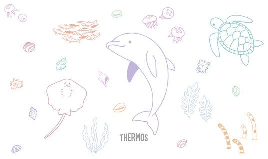 このたび、サーモス スタイリングストア テラスモール湘南店は、2026年4月にオープン5周年を迎えます。オープン5周年を記念して新発売する『真空断熱ケータイマグ(JOM-350TSS/500TSS SHO2)』は、海の生きものをテーマにしたかわいらしいデザインです。イルカやエイ、カメ、クラゲ、チンアナゴなど、水族館で親しまれている海の生きものたちをモチーフに、にぎやかで楽しい“海の世界”を表現しています。湘南でのおでかけや海辺で過ごした思い出を、製品とともにお持ち帰りいただけるような、湘南店限定のデザインに仕上げました。