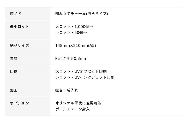 組み立てチャーム(四角タイプ)のサンプル請求は無料
