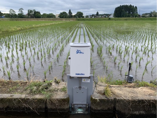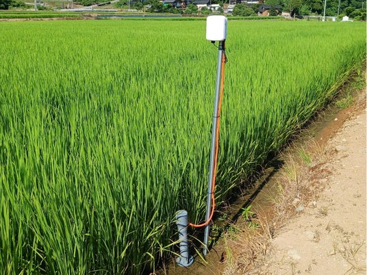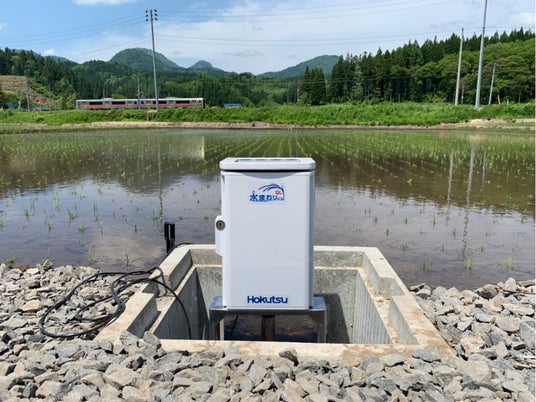 他方、有線で接続しているタイプの機器も本システム含め市販されていますが、そもそも水田への設置については電線の長さに制限を受けるため設置場所が限定されてしまいます。