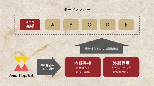 当社はWell-BEANingを実現するための組織づくりとして、新たに「Icon Model」を導入しました。事業承継時に資本参画したIcon Capitalの持ち株を、一定の条件下で経営メンバーの候補となる従業員へ譲渡し、経営株主の目線で事業に取り組むことを促します。