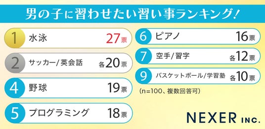 株式会社NEXER・子どもに習わせたい習い事に関する調査