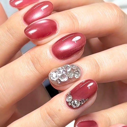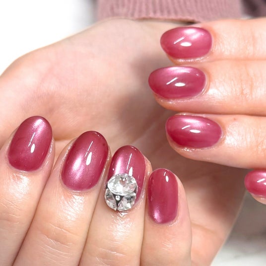 やわらかな透け感の奥にマグネットの光が溶け込み、果実のような奥行きのある艶を演出します。