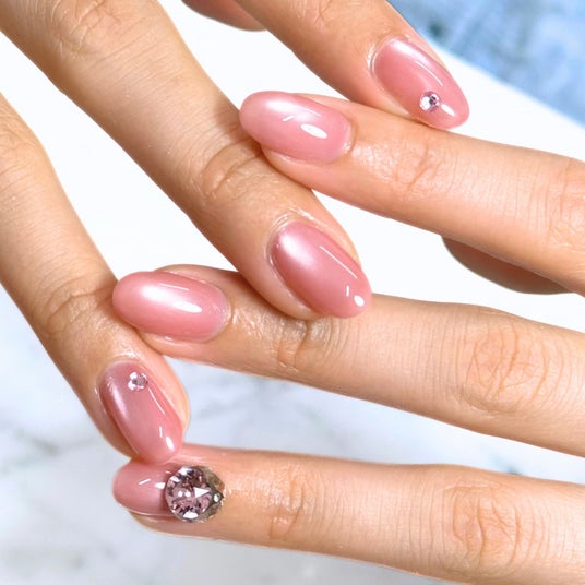 やわらかな透け感にマグネットの光がふわりと重なり、指先を明るくフレッシュな印象に導きます。
