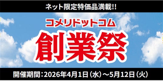 ホームセンターの「コメリパワー」や「コメリハード&グリーン」を通し地域のライフラインであり続けたいと願う株式会社コメリ(所在地:新潟県 新潟市、代表取締役社長:捧 雄一郎)は、2026年4月1日(水)より、オンラインショッピングサイト「コメリドットコム」にて「コメリドットコム創業祭」を開始いたします(一部店舗を除く)。