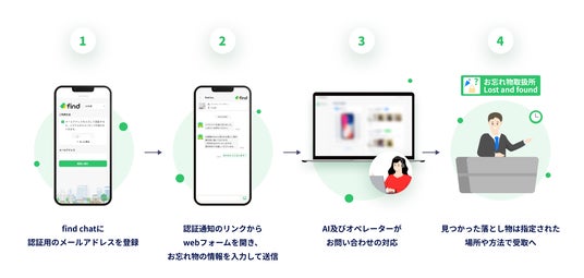 持ち主は「find chat」から落としたであろう施設を複数選択するだけで、オペレーターが対象先を横断して検索・回答します。これにより、落とし主、各事業者の双方の手間が削減されます。