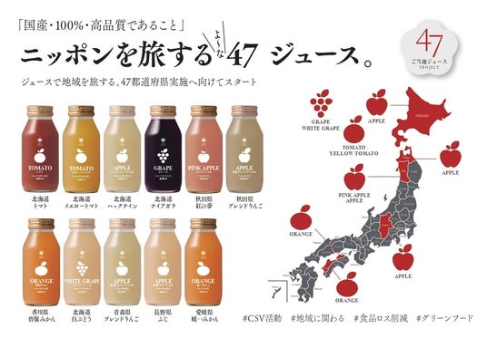 生産地で生まれる余剰果実を活用し、国産100%の高品質なジュースとして各地域で商品化。コラボ商品は海外ブティックで展開され、日本各地の魅力を世界へ発信しています。