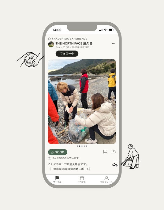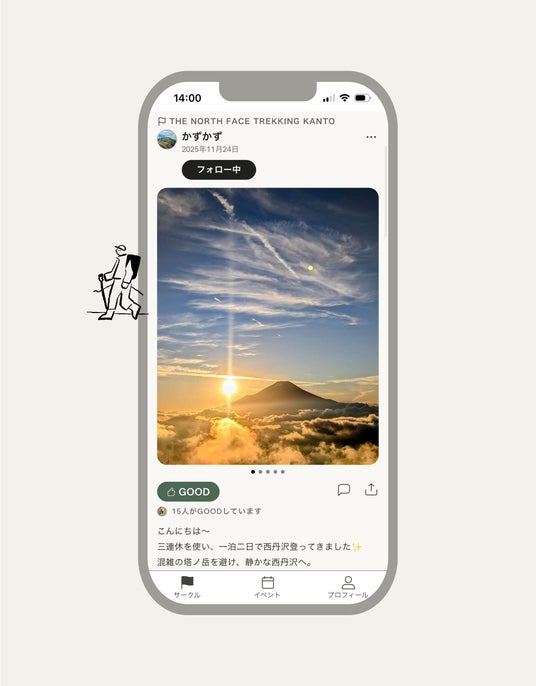 1. サークル機能:アウトドア、トレイル、キャンプ、環境保全などテーマ別サークルに参加し、投稿(活動記録)や写真を共有できます。コメントや「GOOD」などのリアクションにも対応します。
