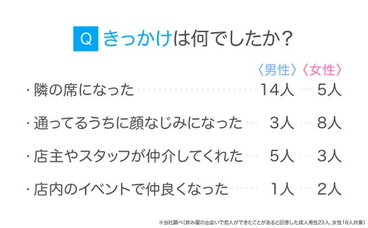 5人に1人が、飲み屋で交際に至った経験を持つ結果となりました。