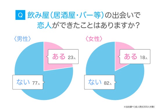 ● 飲み屋で恋人ができた経験がある人は20.50%(200人中41人)となった