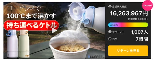 株式会社ロア・インターナショナル(所在地:東京都新宿区、代表取締役社長:Ally Won)は、BLUEFEEL(ブルーフィール)より、Makuakeプロジェクトにて応援購入金額が1600万円を突破いたしました充電式ケトル『Heat100』を4月1日より発売いたします。