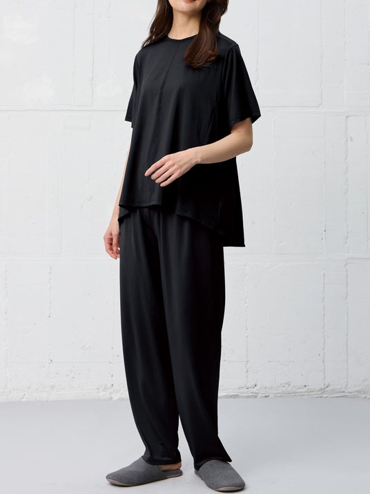 ・半袖プルオーバー:女性らしいAラインシルエットを採用。リラックスタイムだけでなく、そのまま外出できるデザインに仕上げました。