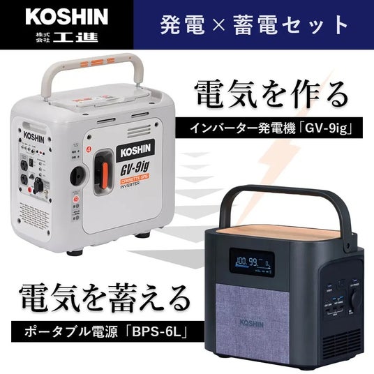 “インバーター発電機「GV-9ig」・ポータブル電源「BPS-6L」のセット