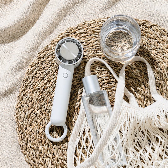 充電式のため使用場所を選ばず、持ち運びも手軽です。送風口には活性炭フィルターを採用し、ホコリやニオイを吸着。