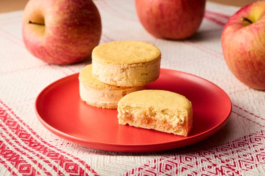 この度、国内線JALファーストクラスに採用された『ミルクスターサンド りんご』は、2025年6月に発売を開始した人気商品『ミルクスターサンド』の新フレーバーです。果肉感を残した青森県産りんごのシロップ煮をバタークリームに混ぜ合わせ、りんごの持つ爽やかな香りと柔らかい甘みを残した贅沢なスイーツに仕上げました。