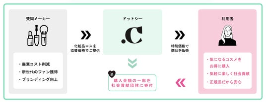 ドットシーでは、廃棄される可能性のあった化粧品を、新たな形で流通させる仕組みを構築しています。利用者にも安心して購入いただくために、取り組みに賛同していただいた協賛企業(化粧品メーカー)から直接仕入れを行い、正規品のみを販売する方針を採用しています。