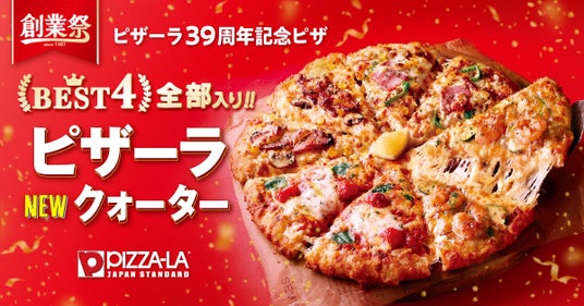 創業39周年を記念して、販売中のレギュラーメニューから人気上位4商品を一枚に詰め込んだ、特別なクォーターピザが登場します。
