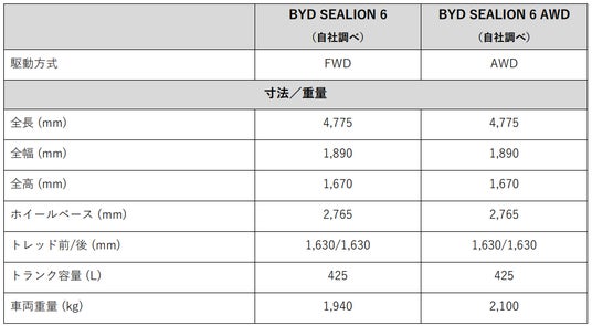 ■ BYD SEALION 6の主要諸元(抜粋版)