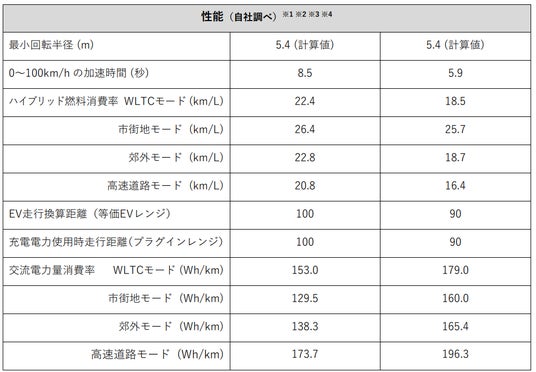 ※3 ハイブリッド燃料消費率およびEV走行換算距離、交流電力量消費率は定められた試験条件での値です。