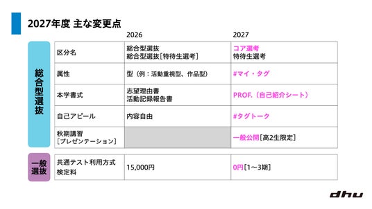 2027年度入試 主な変更点