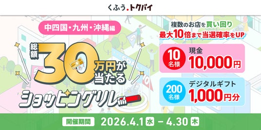 株式会社くふうカンパニー(以下「くふうカンパニー」)が運営するチラシ・買い物情報サービス「くふう トクバイ」は、2026年4月1日より中四国・九州・沖縄エリアで「くふう トクバイショッピングリレー」キャンペーンを開催いたします。