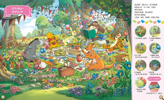 1926年の原作刊行以来、世界中の子どもたち、そして大人たちに愛され続けてきた「くまのプーさん」。その世界観を再現した色彩豊かで温かみのある12のイラストで、さがし遊びを楽しめます。四季折々の100エーカーの森の景色のなかでプーさんたちが楽しく暮らす様子は、プーさんファン必見です!