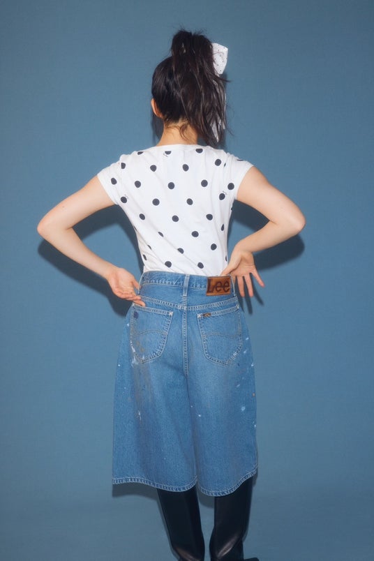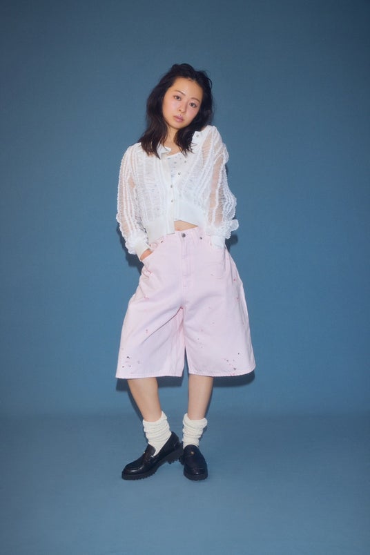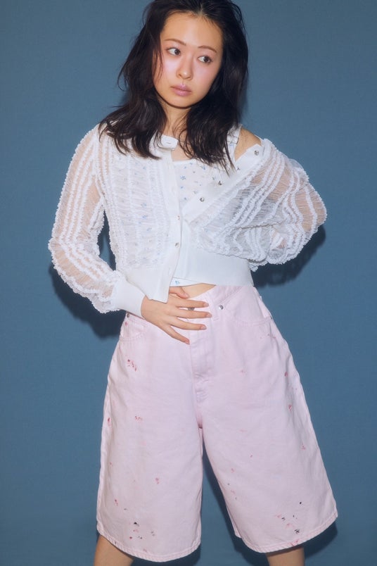 モデルの莉子とともに、フェミニンムードなデニムを楽しんで。