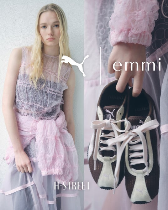 株式会社マッシュスタイルラボ(東京都千代田区/代表取締役社長 近藤広幸)が運営し、デイリーウェアおよびウェルネス&トレーニングウェアを手掛けるレディースブランド「emmi(エミ)」は、グローバルスポーツブランド「PUMA(プーマ)」との別注シューズ”H-STREET”を発売いたします。4月3日(金)12時(正午)よりemmiオフィシャルオンラインストア、USAGI ONLINEで予約販売開始いたします。4月13日(月)~4月19日(日)までルミネ新宿2、4月29日(水)~5月5日(火)まで阪急うめだ本店にて行われる 5ブランド合同のリミテッドコンセプトストア"WELLNESS STYLE LAB"で先行発売いたします。emmi全国直営店舗では5月6日(水)より販売開始いたします。