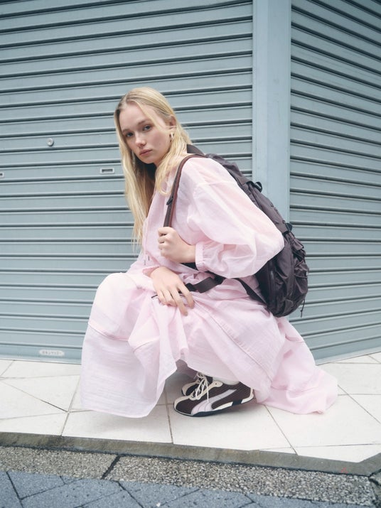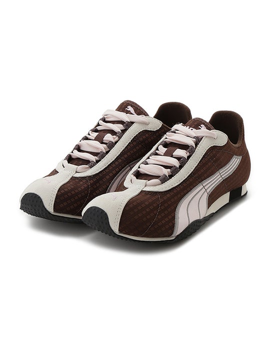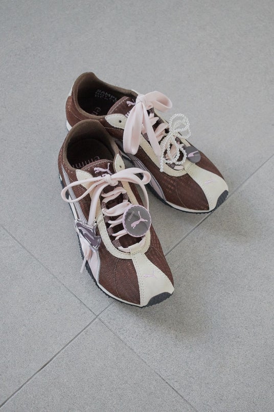 2000年代を象徴するランニングスパイク、プーマ・ハランビーにインスパイアされたH-STREETを初別注。軽量なアッパー、薄型のシルエット、クッション性の高いEVAミッドソール、メッシュアッパーを採用し、軽くて快適な履き心地のライフスタイルモデル。別注では、ブラウン×ピンクのカラーを掛け合わせ、光沢のあるメッシュアッパー、サイドの艶感のある素材や、シューレースホールにラメを取り入れるなど、スポーティさにトレンド感とさりげないフェミニンさをプラス。フットベッドにはWロゴをあしらいました。シューレースは淡いピンクの太めのシューレースと、コーディネートを選ばないアイボリーの2種類が付属し、気分によって付け替え可能。