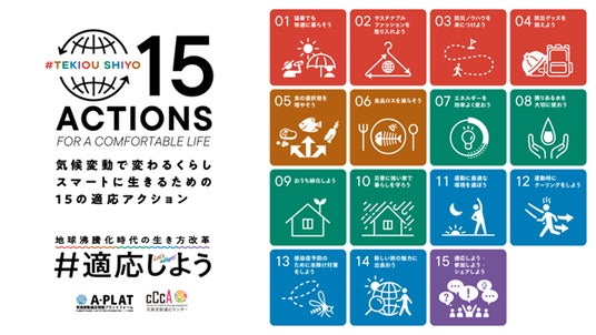 キャンペーンでは、「ライフスタイル」「食」「住まい」など5のカテゴリー、15の具体的な「適応アクション」を提唱しています 。現在、本趣旨に賛同し、共に情報発信を行っていただける企業・団体・自治体等のパートナーを募集しており、ご賛同いただいた方には、ロゴやPRツールを無償で提供しております。ぜひ、CSR・SDGs発信やブランド価値向上にご活用ください。今後も「#適応しよう」キャンペーンを通じて、気候変動適応に関する情報発信を進めていきます。「#適応しよう」キャンペーンサイト: