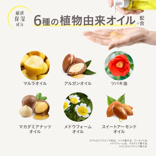 (アルガニアスピノサ核油/ツバキ種子油/アーモンド油/メドウフォーム油/マカダミア種子油/スクレロカリアビレア種子油)