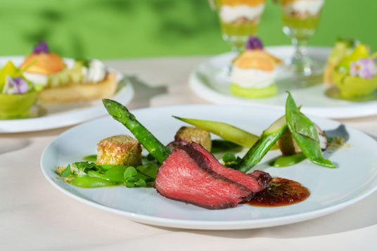 セイボリーには、生ハムメロンの軽やかな塩味や、清涼感のあるメロンのココナッツスープ、黒毛和牛をやわらかく煮込んだラグーのサンドウィッチなど、メロンスイーツを引き立てる逸品をご用意。また、週末限定のローストビーフは、しっとりとした肉質が魅力で、アフタヌーンティータイムに華やかさを添えます。