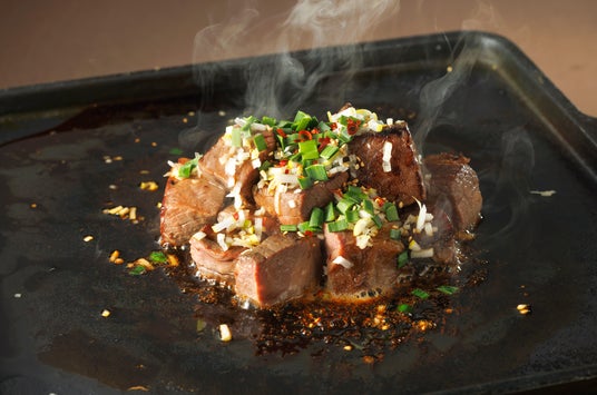 A5等級和牛のカットステーキ/3種の手まり寿司(鮪・サーモン・甘海老)/大きなチーズで絡めるパスタ(ナポリタン・ツナクリーム)