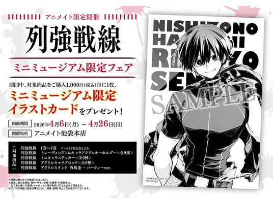 株式会社コアミックス(東京都武蔵野市)が発行する大人気コミック『列強戦線』(うるまなつこ/コアミックス)の第7巻発売を記念して、アニメイト池袋本店にて「『列強戦線』ミニミュージアム」の開催が決定いたしました。