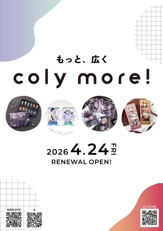 この度、株式会社coly(所在地:東京都港区、代表取締役社長:中島杏奈)は、自社IPを利用した商品や他社コラボ商品を販売する常設店舗「coly more!池袋PARCO店」を、リニューアルオープンすることといたしましたので、お知らせいたします。