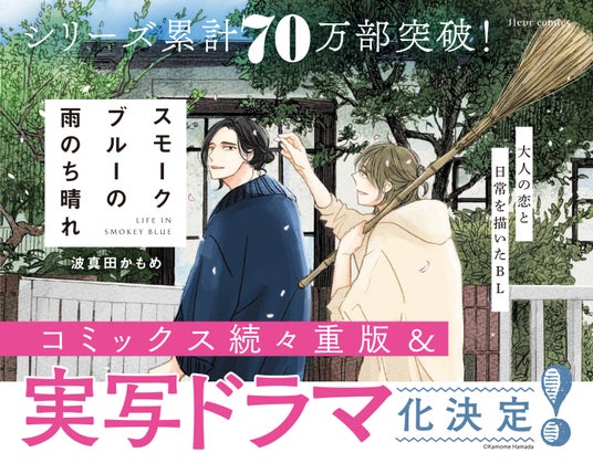 株式会社KADOKAWA(本社:東京都千代田区、取締役 代表執行役社長 CEO:夏野剛)は、シリーズ累計発行部数70万部を突破した人気BLコミックス『スモークブルーの雨のち晴れ』(著:波真田かもめ/フルールコミックス)の実写ドラマ化が決定し、これを記念して全国書店にてフェア開催が決定したことをお知らせいたします。
