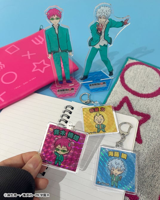 今回登場するアイテムは、「斉木楠雄」のピンクの髪色とグリーンの制服カラーを基調としたデザインに仕上げました。