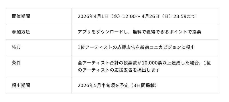 アプリリリース記念!無料投票で推しの応援広告が掲出できるチャンス! |