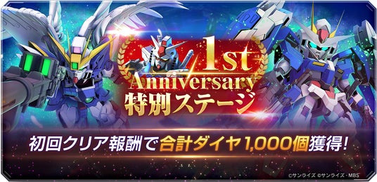 「1stアニバーサリーピックアップガシャ」にて初登場した限定URユニット「ウイングガンダムゼロ(EW版)(EX)」と 「ダブルオーライザー(最終決戦仕様)(EX)」をそれぞれお試しできる「1stアニバーサリー特別ステージ」を追加いたしました。