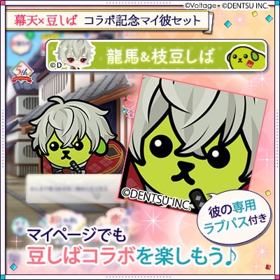 コラボ記念称号に加え、豆しば化した彼らのマイ彼衣装が手に入る限定セットをご用意しました。マイページでも「豆しば」コラボを存分にお楽しみください。