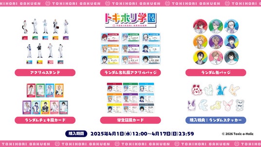 「トキホリ学園」グッズは、公式ファンクラブ(国際toxient対策機関 後方支援部)にて2026年4月17日(日)23:59まで受注販売をいたします。この機会にぜひお買い求めください。