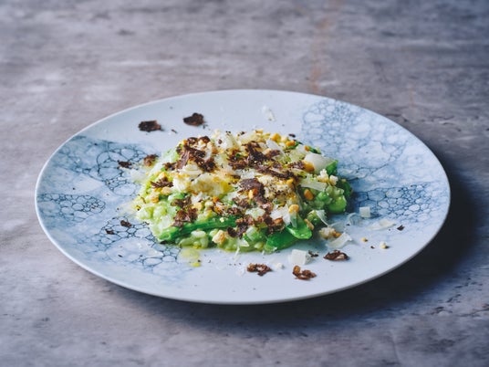 春のいろいろな豆のリゾット厳選した複数の豆を使用し、鮮やかな緑が印象的な一皿に仕上げました。なめらかな口当たりに、サクサクのクルトン、アルデンテに仕上げたお米の粒感が重なり、春の豆の豊かな甘さが口いっぱいに広がります。スプーンを運ぶたびに、食感の変化をお楽しみいただけます。