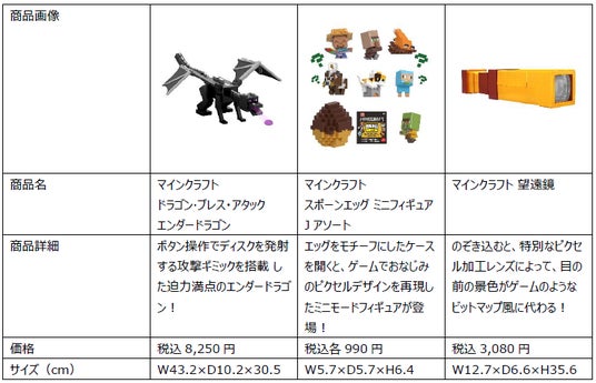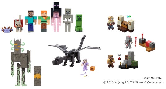 世界大手の玩具メーカー、米国マテル社の日本法人であるマテル・インターナショナル株式会社(本社:東京都中央区、代表取締役社長:石井 恵三)は世界的大ヒットゲーム「マインクラフト」の世界観を忠実に再現した、フィギュア7体入りの豪華な「マインクラフト ベーシックフィギュア ワールドビルダーセット」をはじめ、ダイナミックなアクションが楽しめる「マインクラフト アルティメット エンダードラゴン」、敵キャラクターのアクションフィギュア「マインクラフト クリーキング」、ギミック付き装置で遊びが広がる「マインクラフト ベーシックフィギュア セット」など新作シリーズ全8種を3月下旬より発売いたします。
